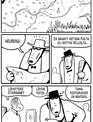 Jere Kostamus on on sarjakuvadekkari joka on toistaiseksi seikkaillut kahdessa albumissa ”Jere Kostamus ja Big Joki” ja ”Jere Kostamus ja Big Niitty”, joka on näistä uusin, ilmestyi loppuvuodesta 2024. Hyvät arvostelut saanut albumi on saatavissa suurimpien kirjakauppojen verkkokaupoista. Alla näytteitä molemmista opuksista.